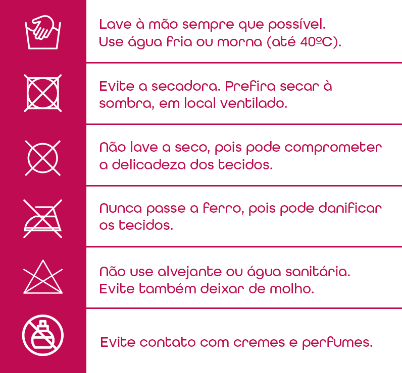 Toque delicado: tecido respirável e acabamento pensado para não irritar a pele.
